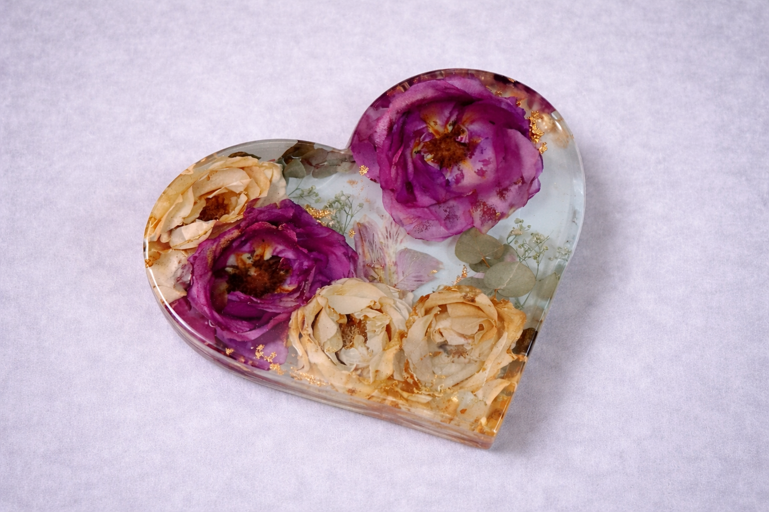 BUQUE NA RESINA FORMATO CORAÇÃO 21CM