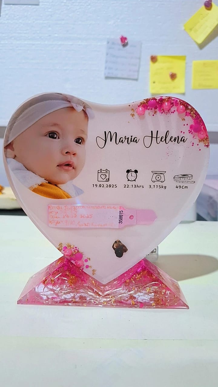 QUADRO 15 CM EM RESIA FORMATO CORAÇÃO COM LUZ A PILHA